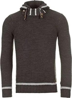 Herren Strickpullover 129 - Kapuzenpullover für Männer, Grau (Anthracite 1003), L