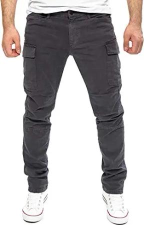 Jayden - Baumwoll Herrenhose - Graue Herren Cargo Hosen - Männer Cargohosen Slim Fit, Grau (Nine Iron 193908), W28/L30