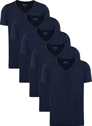 Mythic - 5er Pack Slim Fit Herren T-Shirt V-Ausschnitt - Männer Basic Shirts - Klassische Baumwoll Tshirts, Blau (Dark Sapphire 194020), 6XL