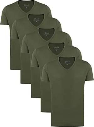 Mythic - V-Ausschnitt Slim Fit Herren T-Shirt - 5er Pack Männer Basic Shirts - Klassische Baumwoll Tshirts, Grün (Kalamata 190510), 6XL