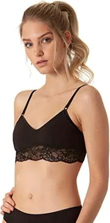 Bambus Damen Unterwäsche, BH - Bralette mit Spitze, Schwarz, Gr. M