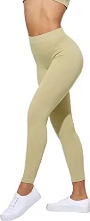 Leggings für Damen Ribbed Collection, Fitnesshose mit hohem Bund, Beige, Gr. M-L