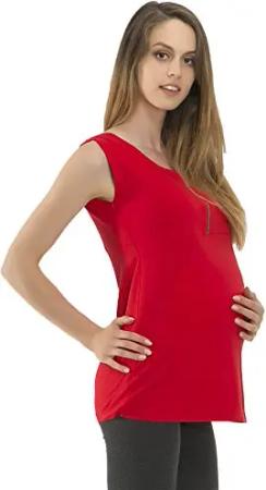 Umstand Shirt Ärmellos Top Tank Tanktop Bauch Bluse Reißverschluss Stretch rot XXL/XXXL
