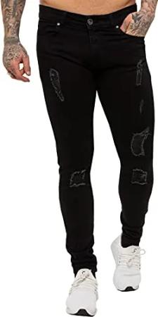 Enzo Herren Super Skinny Jeans mit Rissen, Stretch, ausgefranst, Denim-Hose, Taillengrößen 71,1 cm – 106,7 cm, weiß, 34 W/32 L