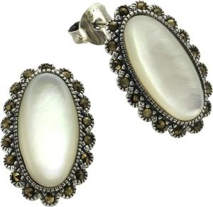 Gemstones Ohrringe Silber 925 oxydiert mit weißem Perlmutt