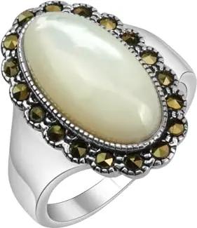 Gemstones Ring Silber 925 oxydiert mit weißem Perlmutt und 18 Markasit-Steinen