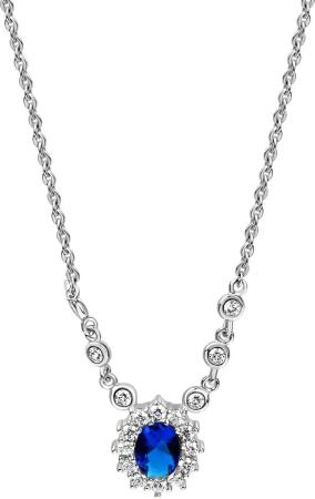 Silber Halskette Silber 925 rhodiniert mit Zirkonia blau und weiß