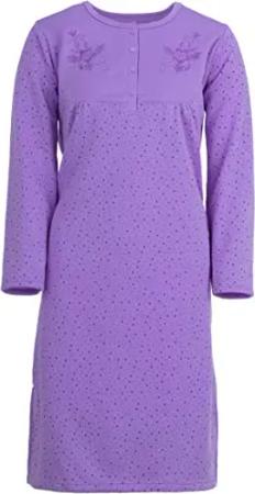 Thermo Nachthemd Lilly Langarm Punktemix Stickerei, Farbe:Flieder, Größe:XXL