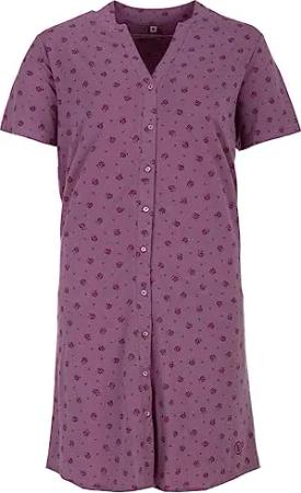 Nachthemd Damen Kurzarm Blüten Knopfleiste Weich M-2XL Leicht, Farbe:Beere, Größe:L