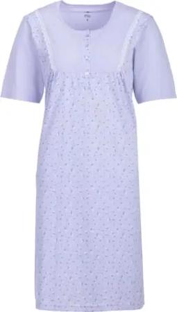 Nachthemd Damen Kurzarm Mille Fleur Spitze Knöpfe M-6XL Knopfleiste Schlafshirt, Farbe:Flieder, Größe:4XL