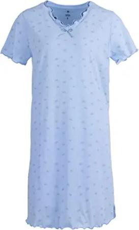 Nachthemd Damen Kurzarm Herz Schmetterling Rüsche Schlafshirt M-2XL, Farbe:blau, Größe:M