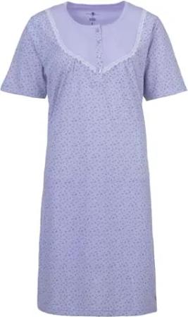 Nachthemd Damen Kurzarm Gänseblümchen Spitze Knöpfe M-6XL Knopfleiste Schlafshirt, Farbe:Flieder, Größe:XL