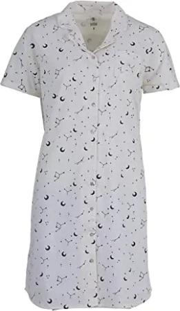 Nachthemd Damen Kurzarm Mond Sterne Knopfleiste Durchgehend, Farbe:Off-White, Größe:L