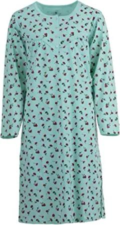 Nachthemd Damen Langarm Blumendruck Schlafshirt Knöpfe Übergröße M-6XL, Farbe:Mint, Größe:M