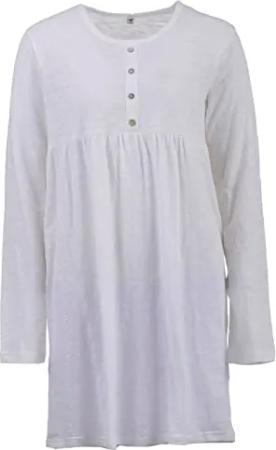 Nachthemd Damen Langarm Raffung Uni, Farbe:Off-White, Größe:XL