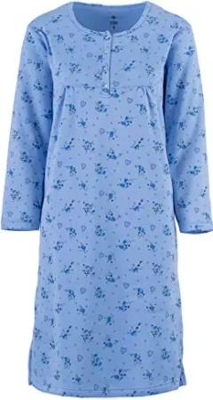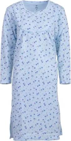 Nachthemd Damen Thermo Langarm Blümchen Knopfleiste, Farbe:hellblau, Größe:XL