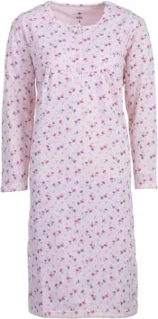 Nachthemd Damen Thermo Langarm Blumen Knopfleiste Paspel, Farbe:rosa, Größe:XXL