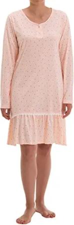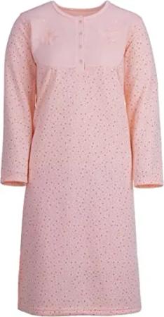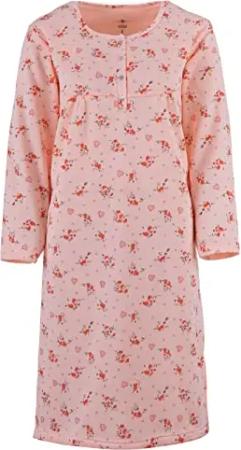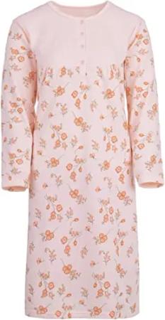 Nachthemd Damen Thermo Langarm Blümchen Knopfleiste, Farbe:apricot, Größe:M