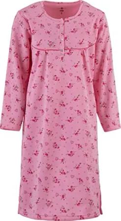 Nachthemd Damen Thermo Langarm Uni Knopfleiste Herz, Farbe:rosa, Größe:XXL