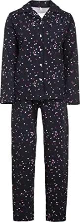 Pyjama Thermo Damen Schlafanzug Winter Set Herz, Farbe:Navy, Größe:M