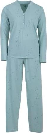 Schlafanzug Damen Langarm Pyjama Sterne Knöpfe Baumwolle M-2XL, Farbe:Mint, Größe:M