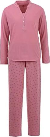 Schlafanzug Pyjama Set Herz Ginko Langarm Knopfleiste, Farbe:Altrosa, Größe:XL