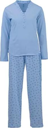 Schlafanzug Pyjama Set Herz Ginko Langarm Knopfleiste, Farbe:blau, Größe:M