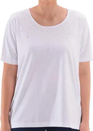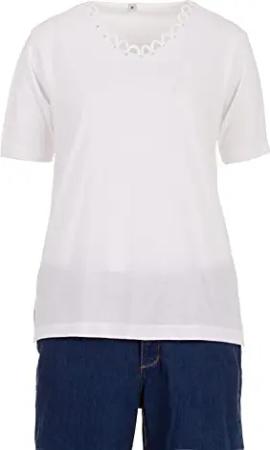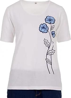 T-Shirt Damen Kurzarm Rundhals Blumenstickerei, Farbe:weiß, Größe:XL