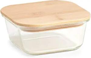 Vorratsbehälter mit Bambusdeckel, PET 14755 , Maße (L x B x H): 11,9 x 13 x 6,4 cm