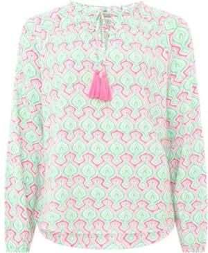 Bluse Damen Shirt Langarm bunt Boho (DE/NL/SE/PL, Alphanumerisch, S, M, Regular, Regular, Mint)