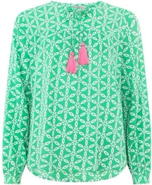 Bluse, Langarm, Damen Shirt bunt Boho Muster (DE/NL/SE/PL, Alphanumerisch, S, M, Regular, Regular, Knallgrün)
