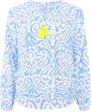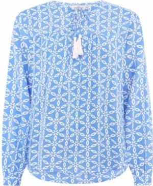 Damen Bluse, Baumwolle, Langarm, Gemustert, Modern (DE/NL/SE/PL, Alphanumerisch, S, M, Regular, Regular, Blau)