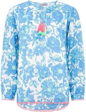 Damen Bluse, Viskose, Langarm, Rundhals mit Quasten, Blumenmuster, Regular Fit (DE/NL/SE/PL, Alphanumerisch, M, Regular, Regular, hellblau)