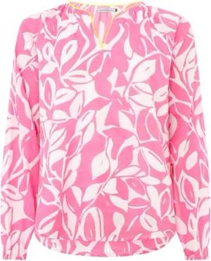 Damen Bluse, Viskose, Langarm, Rundhals, Gemustert, Modern (DE/NL/SE/PL, Alphanumerisch, L, XL, Regular, Regular, Pink)