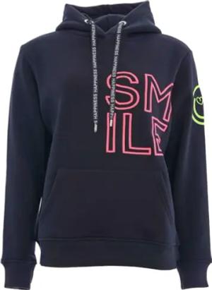 Damen Kapuzenpullover, Casual Sweatshirt mit Smile-Aufdruck, Regular Fit, Langarm (DE/NL/SE/PL, Alphanumerisch, S, Regular, Regular, schwarz)