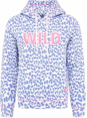 Damen Kapuzenpullover, Leoparden-Muster in Pastell-Blau, Pink Wild-Schriftzug, Gr. S
