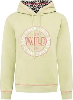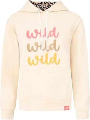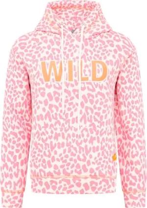 Damen Kapuzenpullover, Leoparden-Muster in Rosa und Weiß, WILD-Schriftzug in Orange Größe S