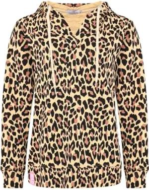Damen Kapuzenpullover Pulli Hoodie, Leoparden-Muster und Unifarben, Beige (DE/NL/SE/PL, Alphanumerisch, M, Regular, Regular, Leo)