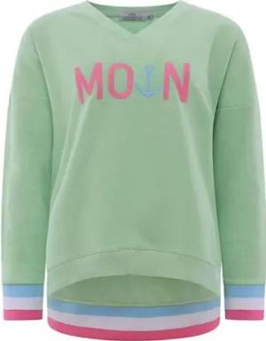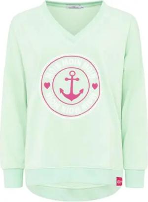 Damen Sweatshirt, Maritim-Design mit Anker, Mint, V-Ausschnitt, 60% Baumwolle (DE/NL/SE/PL, Alphanumerisch, L, XL, Regular, Regular, Mint)