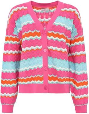 Damen Strickjacke, Maritim Streifen-Wellen Design, Regular Fit, V-Ausschnitt, Baumwolle rosa und blau