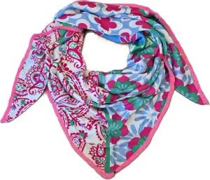 Dreieckstuch mit Paisley- und Blumenmuster, Pink-Blau-Grün, Fransen-Kante