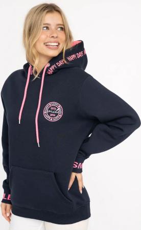 Hoodie ""Happy Days"", gestickte pinke Details, Kapuze, Kordelzug, Tasche vorne, Rippbündchen