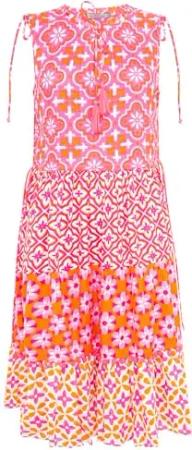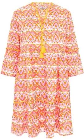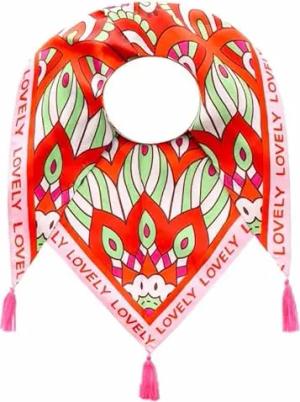 Tuch mit Quasten, Lovely-Print, Orange-Grün-Rosa, Dreieckstuch
