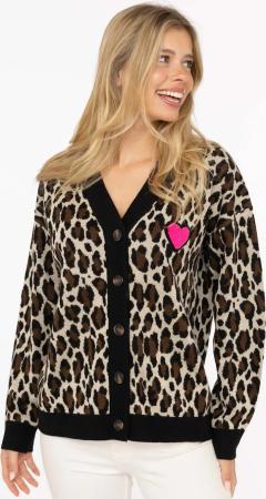 Strickjacke ""Herz"" mit Knöpfen, Leomuster und Herzpatch
