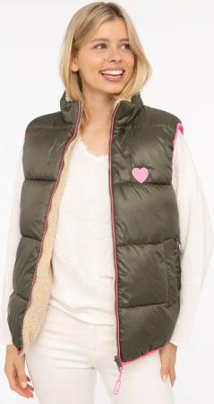 Steppweste ""Love Print"" modisch, Doppelzipper, Druckknöpfe, knielang, Kapuze