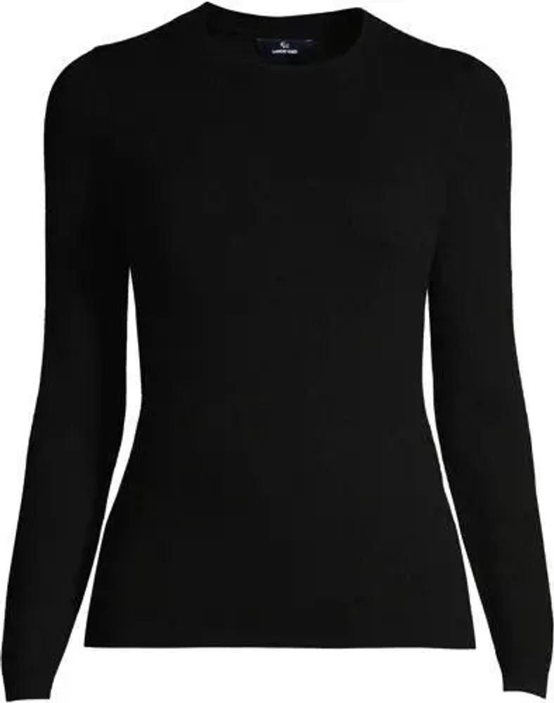 Kaschmir-Pullover mit rundem Ausschnitt, Damen, Schwarz, Kaschmir, by Lands' End