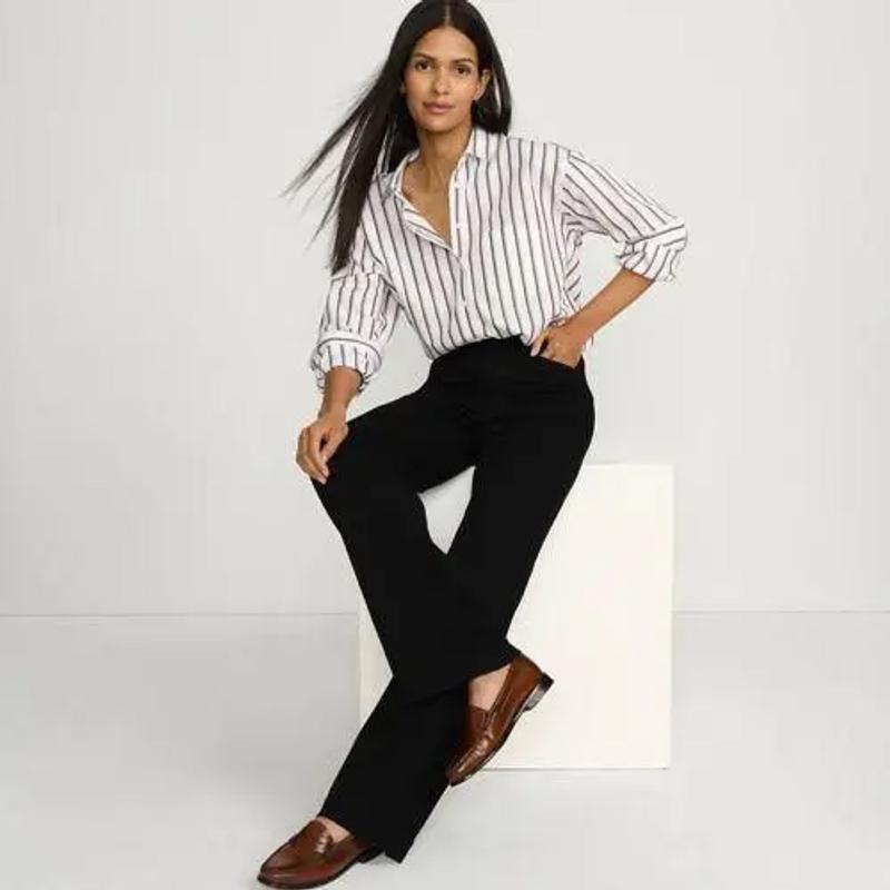 Jeans High Waist mit weitem Bein Farbig, Damen, Schwarz, Elasthan/Baumwoll-Mischung/Polyester-Mischung, by Lands' End