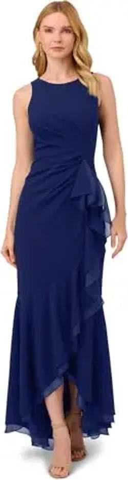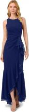 Adrianna Papell Damen Neckholder Rüschen aus Krepp Kleid für besondere Anlässe, Marineblauer Satin, 32