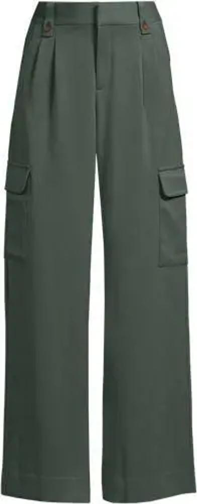 Cargo-Bundfaltenhose mit weitem Bein, Damen, Grün, Elasthan/Viskose/Viskose-Mischung, by Lands' End