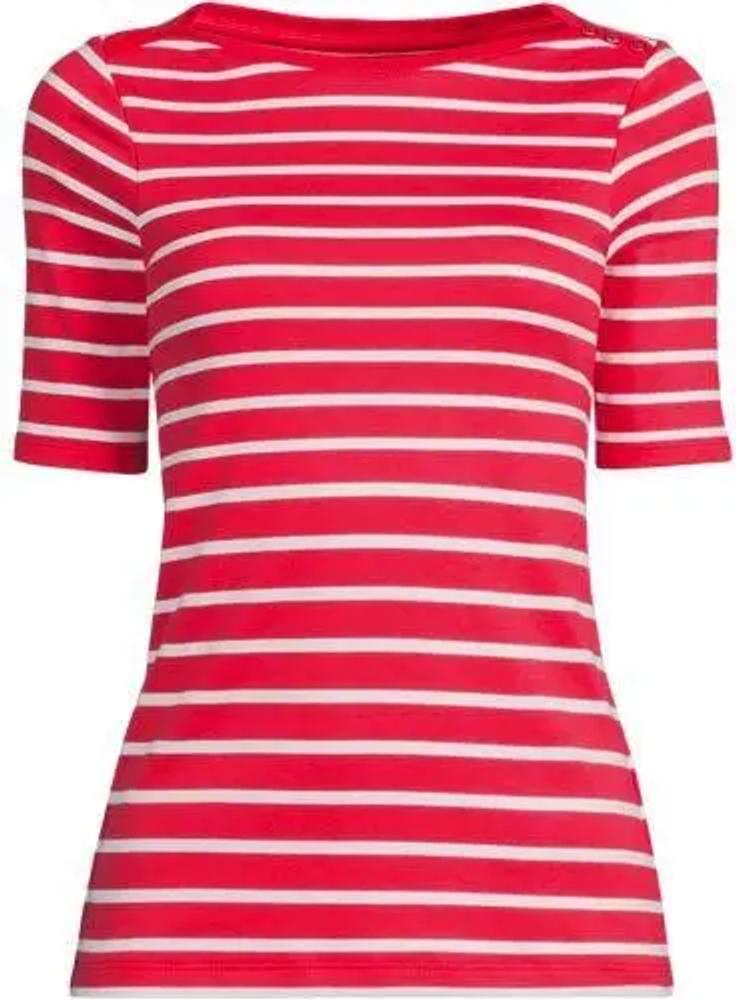 Supima-Shirt aus Baumwolle mit U-Boot-Ausschnitt, Damen, Rot, Baumwolle, by Lands' End